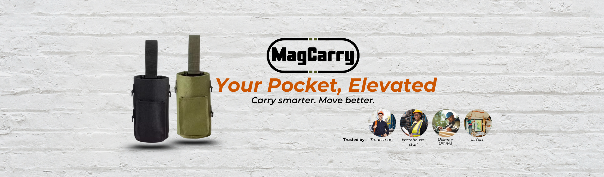 MagCarry is a bag built by builders, for builders. Designed to keep your tools, phone, and water bottle off the ground and within reach, it protects your gear from dirt and damage while saving your back from constant bending. Tough, practical, and built for real work—MagCarry is your pocket, elevated.